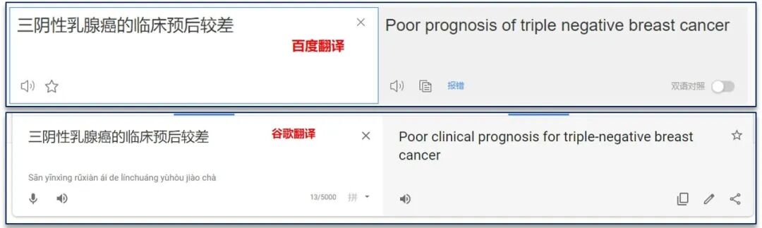 如果你把这句话扔进百度或者谷歌翻译,可能会让你大失所望:Poor prognosis of triple negative breast cancer